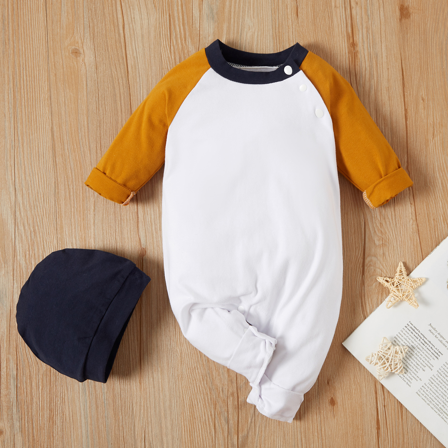 Be the first to review “2-piece Baby Colorblock Jumpsuit with Hat Set”