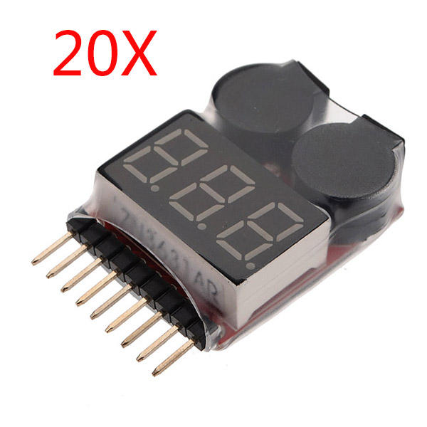 20x 2 in 1 Lipo Battery Low Voltage Tester 1S-8S Buzzer AlarmDescription:1. Brand NewHigh Quality.2. Use for 1-8s Lipl/Li-ion/LiMn/Li-Fe.Voltage detection pricision: 0.01V.Unit voltage display range: 0.5V-4.5V.Total voltage display range: 0.5V-36V.1S test mode voltage range: 3.7v-30v.Low voltage alarm mode for 2-8S.Alarm set value range: OFF-2.7V-3.7V.3. When the voltage is below the set value,it will buzzer with red LED light,pre-set value 3.3V.4. Push key which can change the voltage settings and save.5. Size: 3.9cm x 2.4cm x 0.9cm.6. For 1S-8S / Lipo / Li-ion / Li Mn / Li-Fe Battery.Features:-This product is using for detecting 1S-8S lithium battery-Detect the voltage of each battery core automatically, support reverse connection protection.-To know the working state of your battery anytime, protect the battery from overcharge and over discharge.-The red LED will flash,the buzzer will beeping when the voltage is below the set point.-The factory default setting is 3.3V, press the button to change the voltage setting, and it will save your current setting automatically.Package Include:20 x Voltage Buzzer Alarm