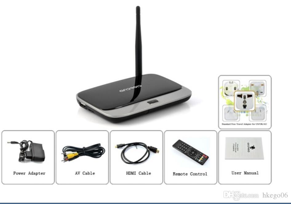 Connectors: HDMI Model: CS918 Decode Ability: 1080P (Full-HD) RAM + ROM: 2G + 8G Supported Internet Services: Skype Netflix Facebook YouTube Twitter Remote Control: Included CPU: RK3188 28nm Cortex-A9 Quad core Quad Core Video Format: ASF MPEG/MPG/DAT AVI System: Android 4.4 Brand: Android TV Box Recording: No