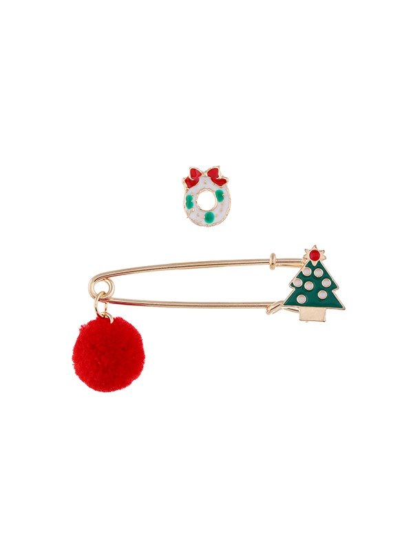 2Pcs Christmas Glazed Pom Pom Brooch Set
