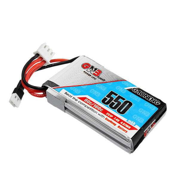 2PCS Gaoneng GNB 7.4V 550mAh 2S 80/160C Lipo Battery White PlugDescription:Battery parameter: Gaoneng GNB 7.4V 550mAh 2S 80/160C Lipo Battery White PlugCapacity: 550mAhSize: 66x30x10mmContinuous Discharge Rate: 80/160CWeight: 36gColors: Standard ColorsNote: Due to the difference between the measurement, the battery dimension and weight may have little error.Caution:Dont over-charge, or over-discharge batteries.Dont put it beside the high temperature condition.Dont throw it into fire.Dont throw it into water.Package Included:2x Battery