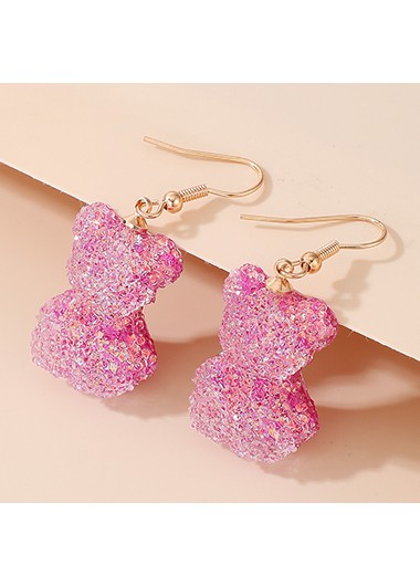 3 X 2cm Pink Bear Metal Earring Set FREE Shipping & 30 Days Easy Return