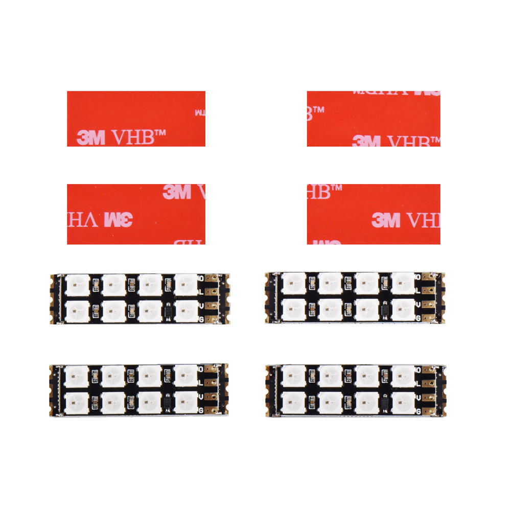 4 PCS 2-12S Mini LED Light Board With 8 WS2812B Lamps for RC Drone FPV RacingSpecification:LED model: WS2812B (LED_Strip)LED quantity: 8 PCSLED voltage: 3.3-5.5VThree phase overcurrent 80ASupport voltage: 2-12SSize: 42*12*1.8mmWeight: 2.3gPackage included:4x LED light board4x 3M glue 10*33mm