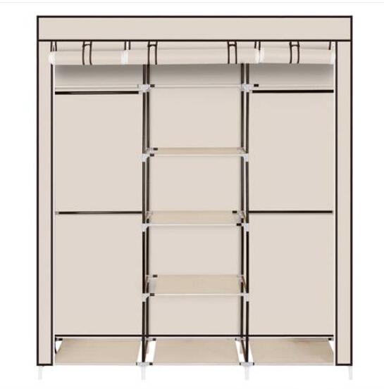 69" Portable Clothes Closet Non-Woven Fabric Wardrobe Double Rod Storage Organizer Beige