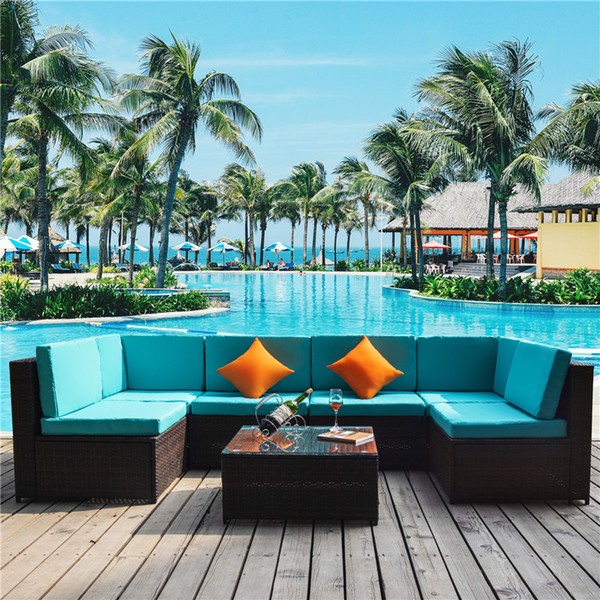 7 pcs patio furniture sofa blue cushion outdoor gadern sets us in stock fast ing