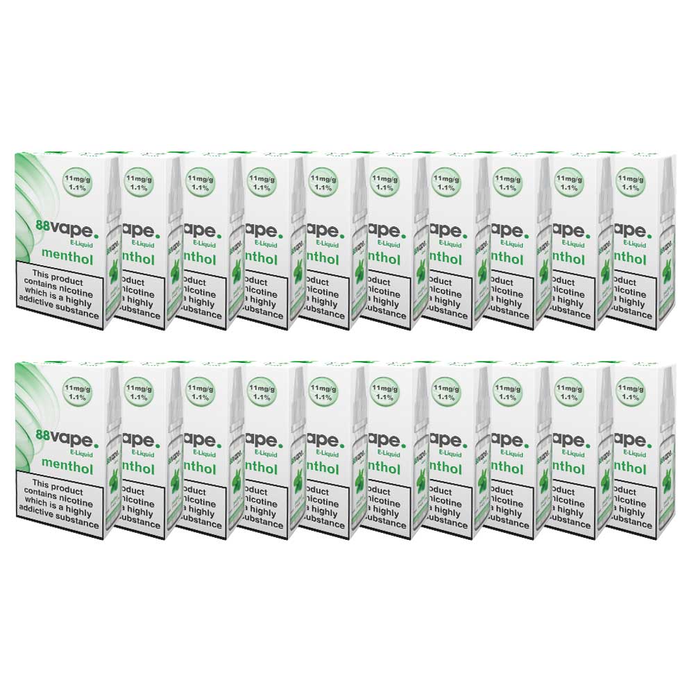 Get massive savings with this Bulk Box of 20 bottles and fast mainland UK delivery. Exhilarating menthol flavour UK made with 100% organic and natural ingredients, this e-liquid features 11mg nicotine content.Every 88Vape bottle is made with a long plastic nip, so it’s easier to fill your clearomizer and start vaping.What’s included 88Vape E-Liquid 11Mg Menthol 10ml – 20 pack