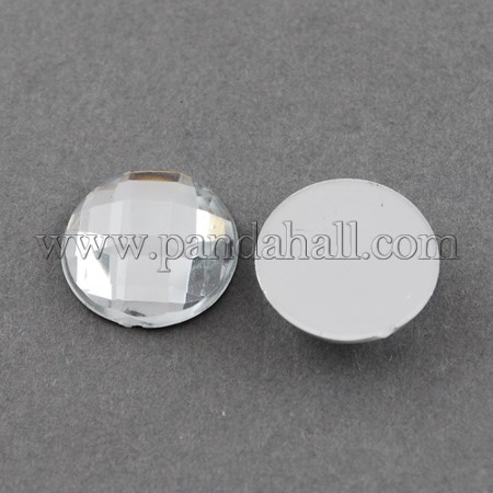 Acrylic Rhinestone Cabochons, Flat Back, Faceted, Half Round, ClearSize: about 12mm in diameter, 4.5mm thick; about 1000pcs/bag.Lightweight and decent resin cabochons, great for using with flat earstud components, cufflinks, spot pins, button covers and fold-over bails. Use these cabochons with any flat components on a chain or as a drop design.