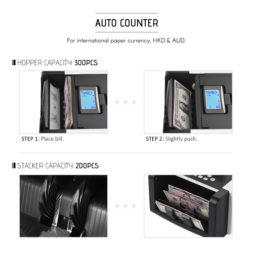 Cancountalmostall papercurrency,andforplasticcurrency,itisjustsuitableforHKDAUD;Countquantityonly,cannotdetectcurrencyvalue.