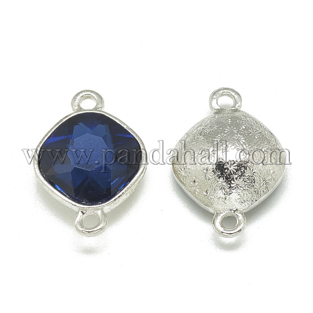 Alloy Glass Links/Connectors, Faceted, Rhombus, Platinum, PrussianBlueSize: about 22mm long, 15mm wide, 7mm thick, hole: 2mm.
