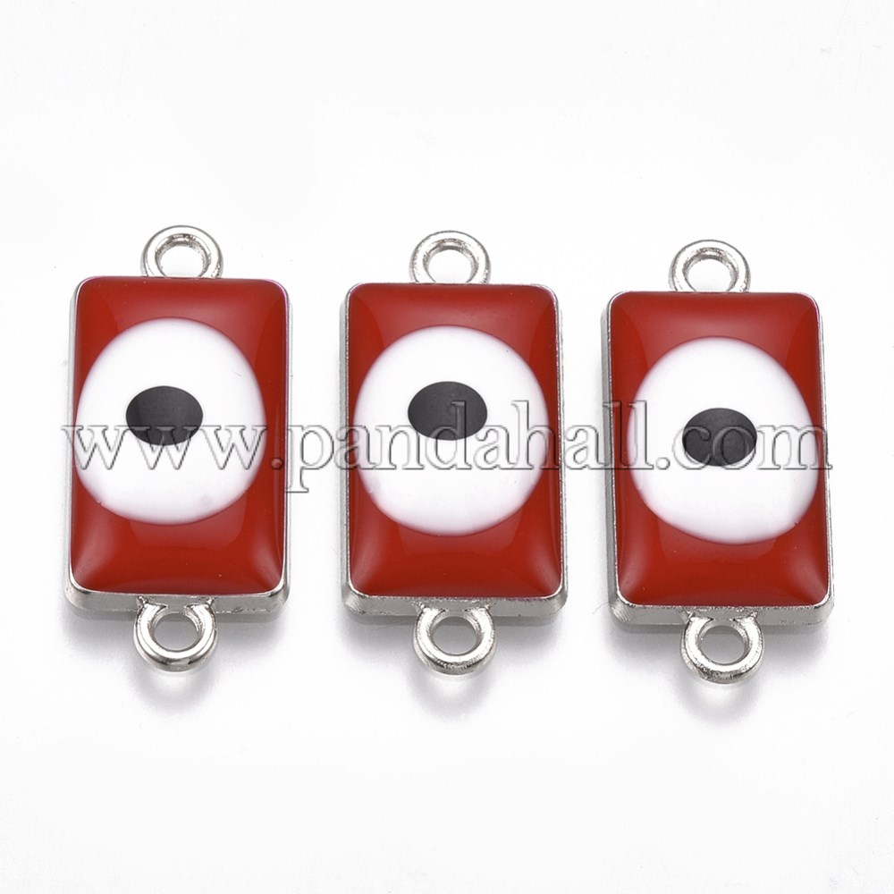 Alloy Links/Connectors, with Enamel, Rectangle with Evil Eye, Platinum, RedSize: about 24.5mm long, 11mm wide, 4.5mm thick, hole: 2mm.
