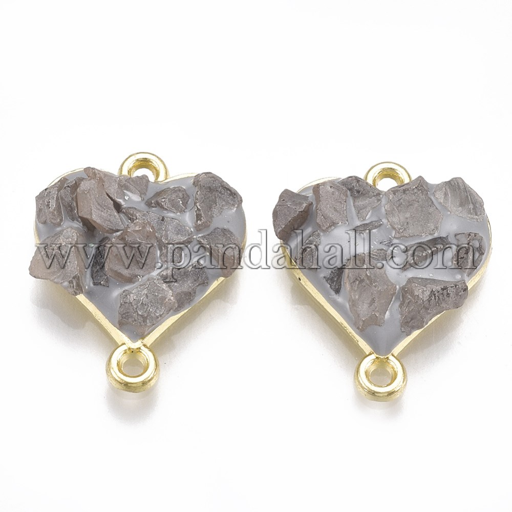 Alloy Links/Connectors, with Gemstone and Enamel, Heart, Light Gold, GainsboroSize: about 20mm long, 16mm wide, 6mm thick, hole: 1.5mm.