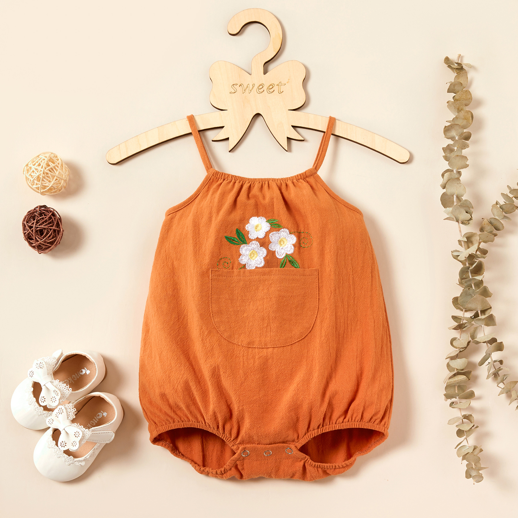 Be the first to review “Baby Floral Embroidered Strappy Rompers”