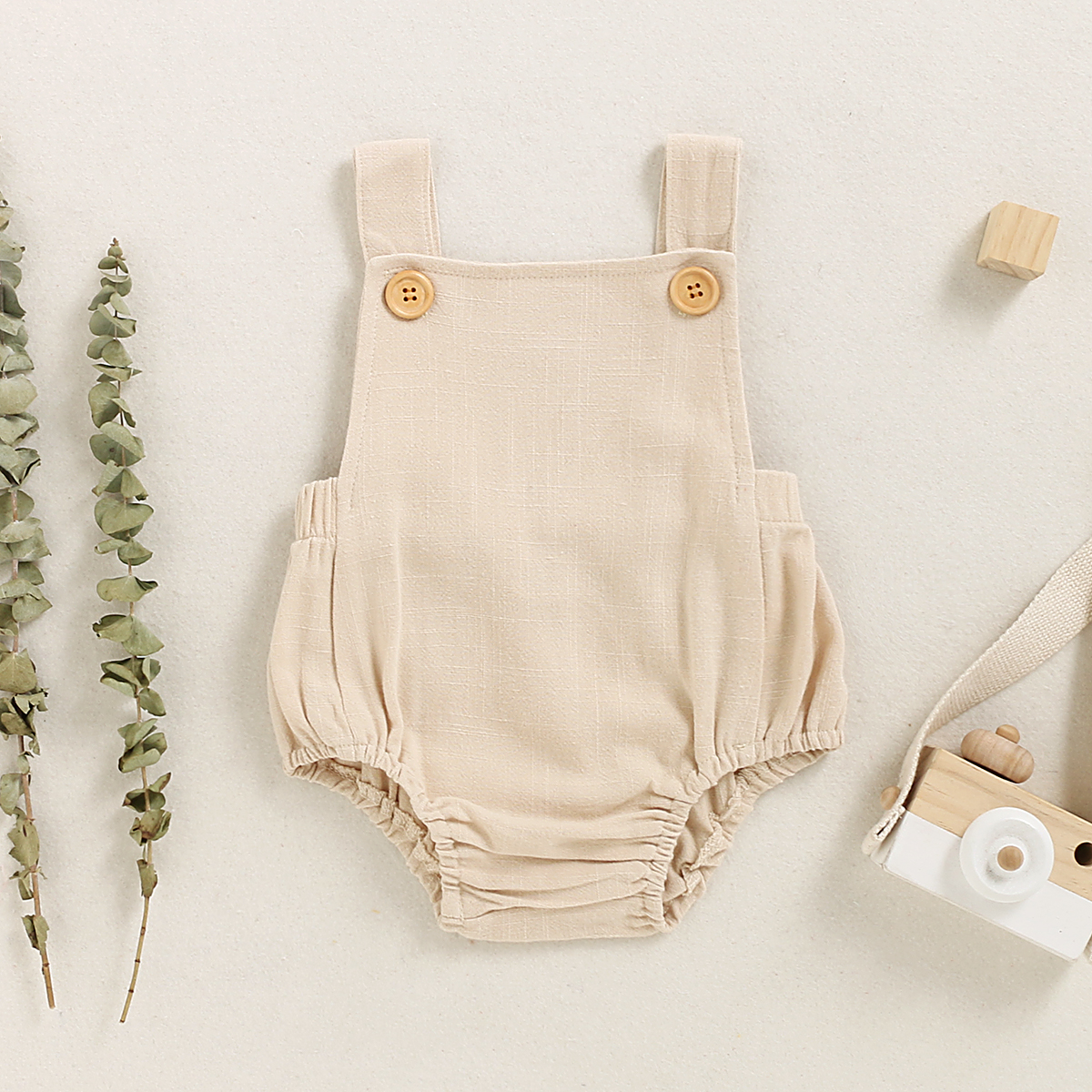 * Bottom snap * Soft and comfy * Material: 60% Cotton, 40% Linen * Machine wash, tumble dry * Imported