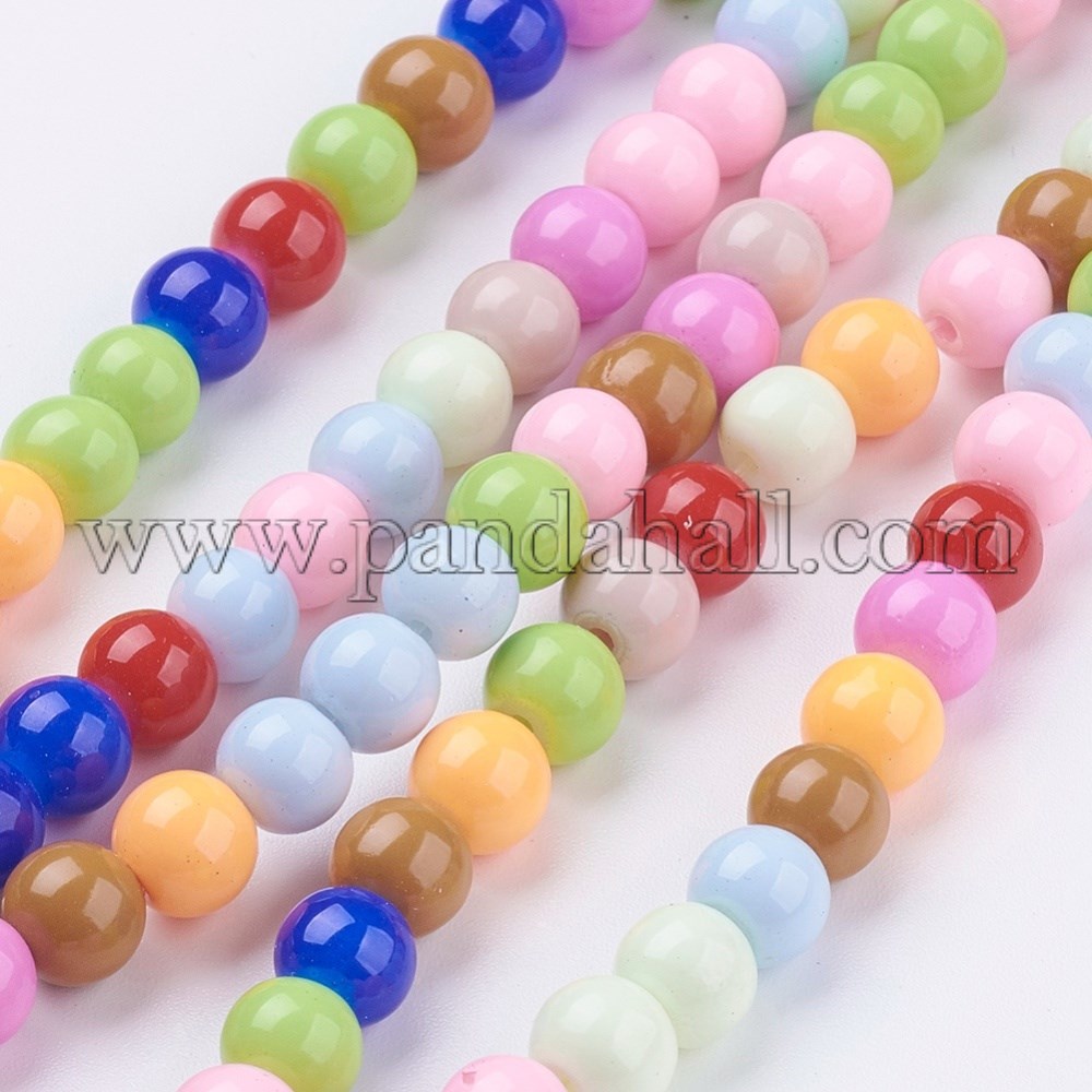 Baking Paint Glass Beads Strands, Round, Mixed Color, 6mm, Hole: 1mm; about 74pcs/strand, 16″