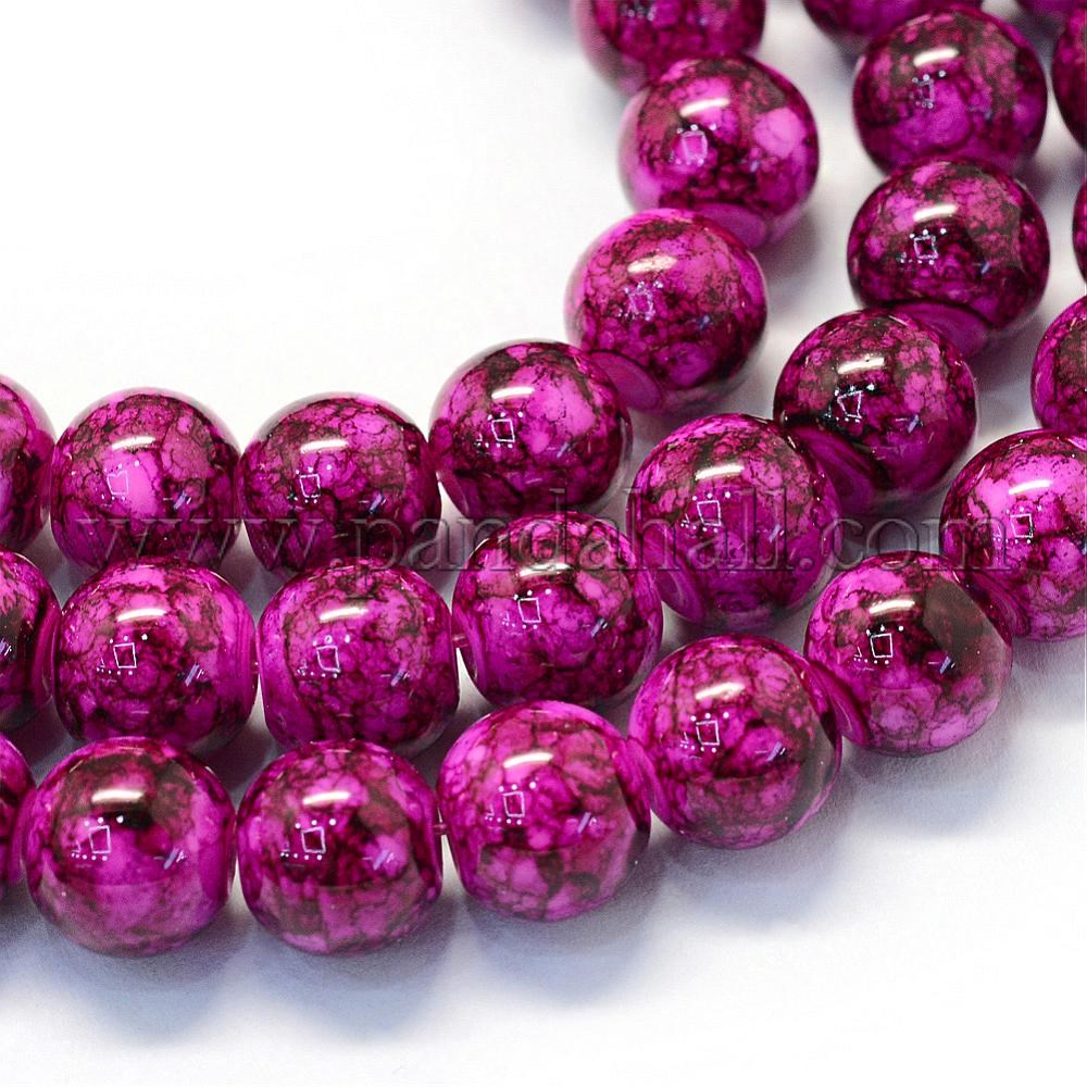 Baking Painted Glass Round Bead Strands, MediumVioletRedSize: about 8.5~9mm in diameter, hole: 1.5mm; about 105pcs/strand, 31.8″.