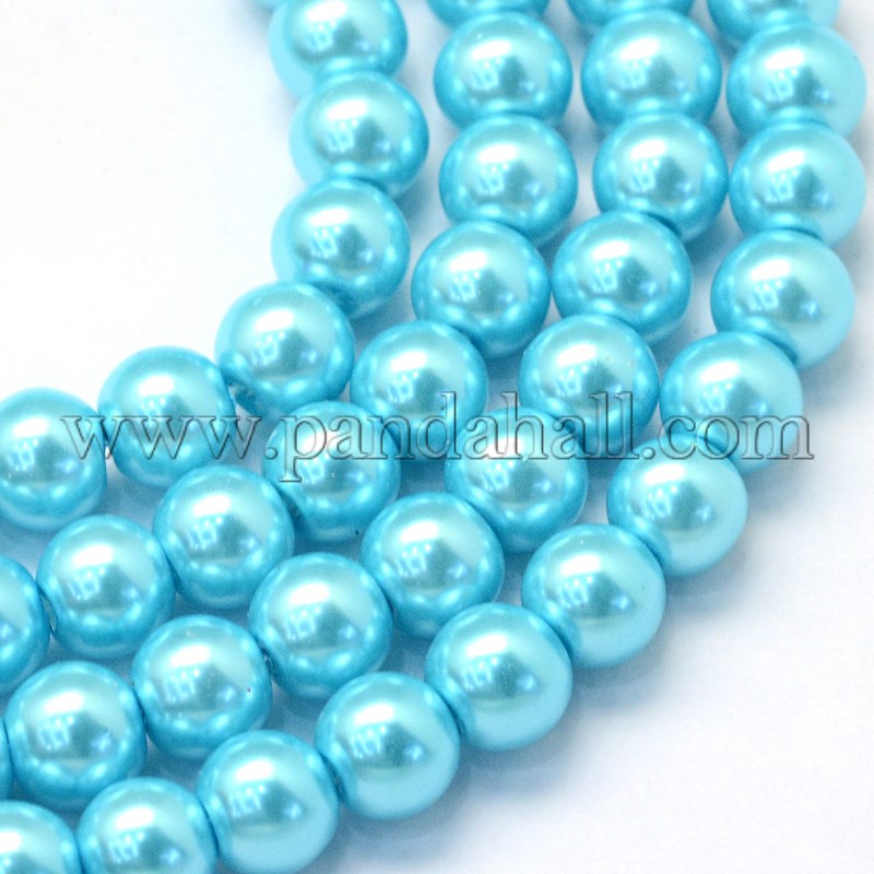 Baking Painted Pearlized Glass Pearl Round Bead Strands, CyanSize: about 6~7mm in diameter, hole: 1mm; about 145pcs/strand, 31.4″.