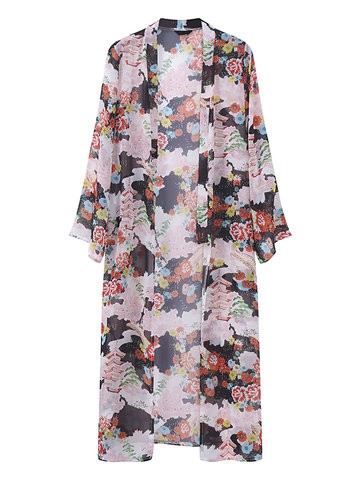 Floral Printed Long Chiffon Kimonos for Women