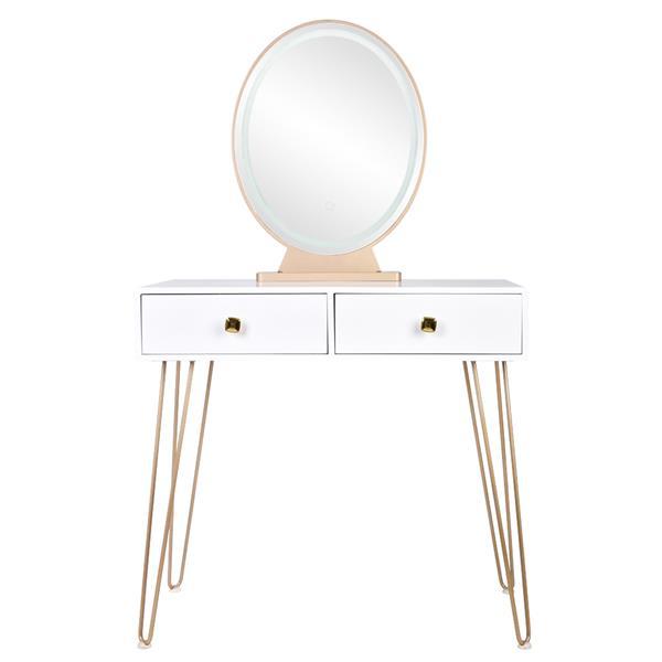 Bedroom Iron Dressing Table Simple Dressing Table Golden Iron Foot White Desktop With Light Three-Color Adjustable