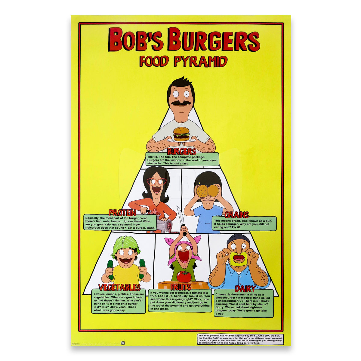 When you need something to give your living space a more comfortable atmosphere with more personality, these high-quality printed posters will have you covered! Featuring the main cast of Bobs Burgers with their comical rendition of the food pyramid, these posters are the perfect addition to your decor to make a place feel more like home. Measuring at 24″ by 36″ in size, you will have plenty to work with when you hang one of these crisp posters up on your wall!