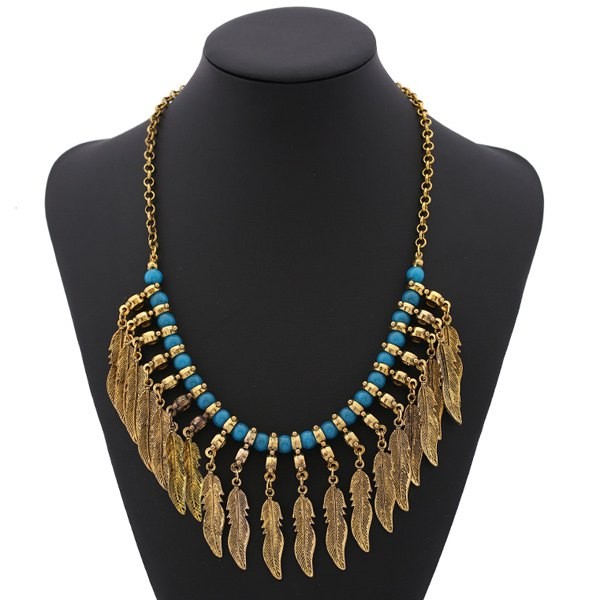 Be the first to review “Bohemian Artificial Turquoise Leaf Pendant Necklace”