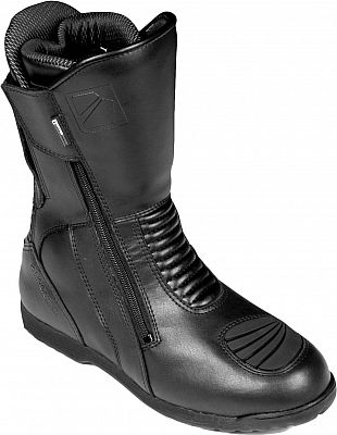PU coated leather construction. Molded anti-twist midsole with steel shank reinforcement. Volcanized anti-slip rubber sole. Gear change toe pad. Waterproof breathable membrane. Double zipper closure for easy entrance.