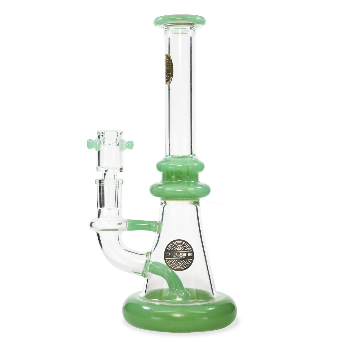 Durable and made of premium-quality materials, this stunning glass beaker from Bougie Glass is the high-class water pipe that your collection has been missing. Enjoy a more sophisticated smoking experience when you enjoy the smooth smoke that this beaker offers. To make it even smoother, this beaker has been masterfully crafted to include a diffused down stem so that you get more filtration and a smoother smoke. Pops of beautiful jade and gold accents make this piece stand out and easy to fall in love with. Live in luxury when you smoke with this Bougie Glass water pipe! This glass piece has a 14mm Female joint that will fit 14mm Male accessories and replacements.