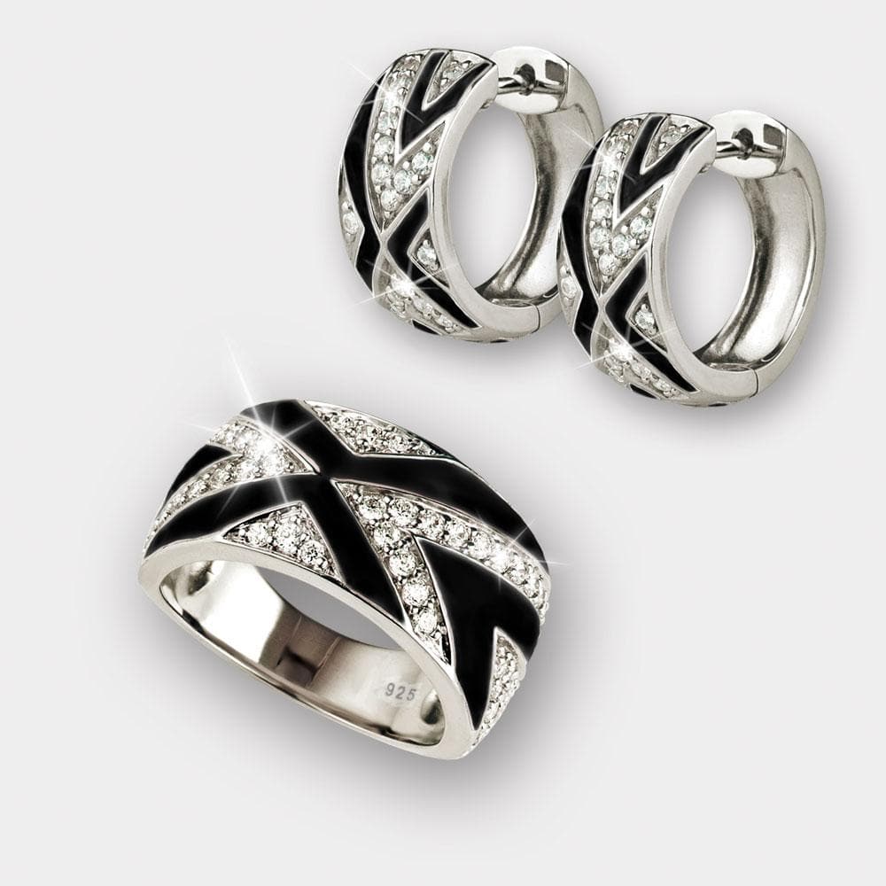 The celebrity lead trend for ceramic watches shows no sign of slowing down. If you have already purchased one of our amazing ceramic timepieces then these fine rings are the perfect companions. Expertly crafted from finest 925 sterling silver, plated in precious rhodium and inlaid with fashionable enamel in a contemporary geometric pattern. To add that extra special sparkle we have set each piece with our flawless lab-created Diamondeau® – the Supreme Diamond Alternative. gems. Delivered to you in our magnificent presentation cases.
