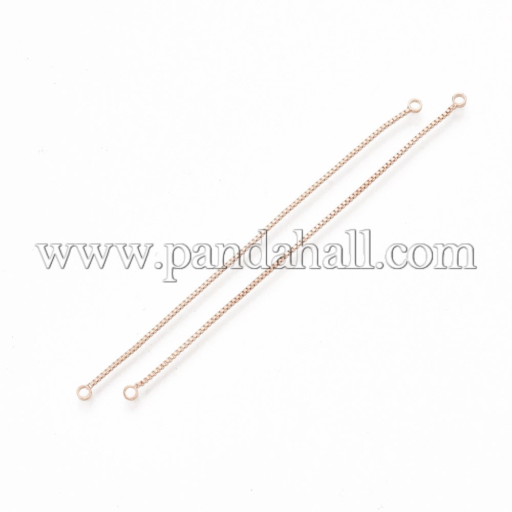 Brass Chain Links/Connectors, Rose GoldSize: about 80mm long, 1mm wide, 1mm thick, hole: 1.6mm.