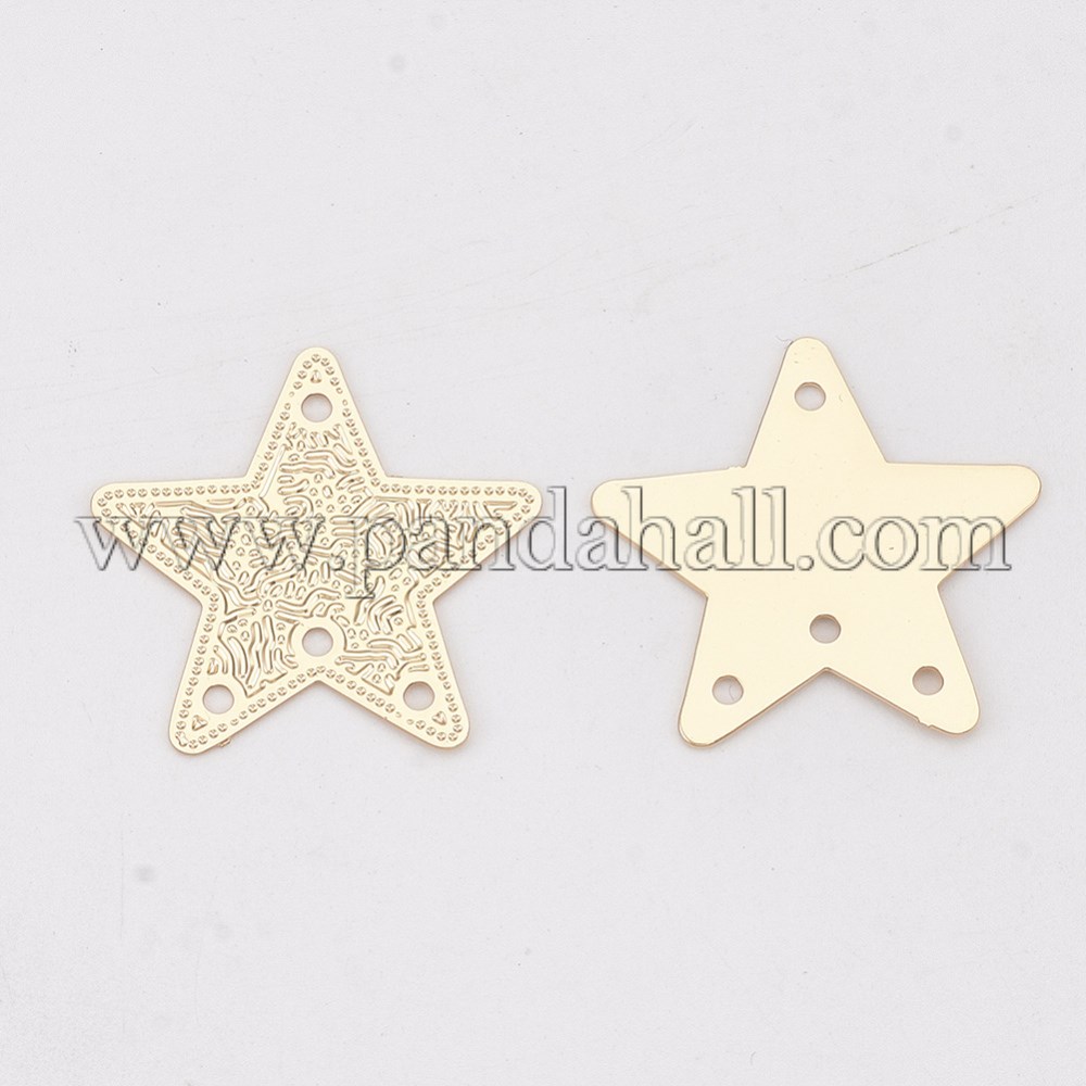 Brass Chandelier Components Links, Etched Metal Embellishments, Long-Lasting Plated, Star, Light GoldSize: about 19.5mm long, 20.5mm wide, 0.3mm wide, hole: 1.2mm.