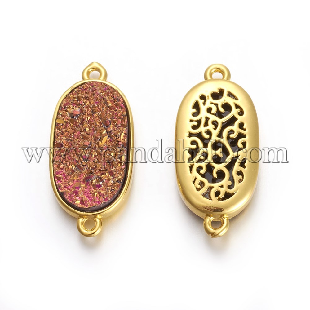Brass Links, with Druzy Acrylic, Golden Plated Color, Long Oval, ChocolateSize: about 22mm long, 10mm wide, 4mm thick, hole: 1.2mm.