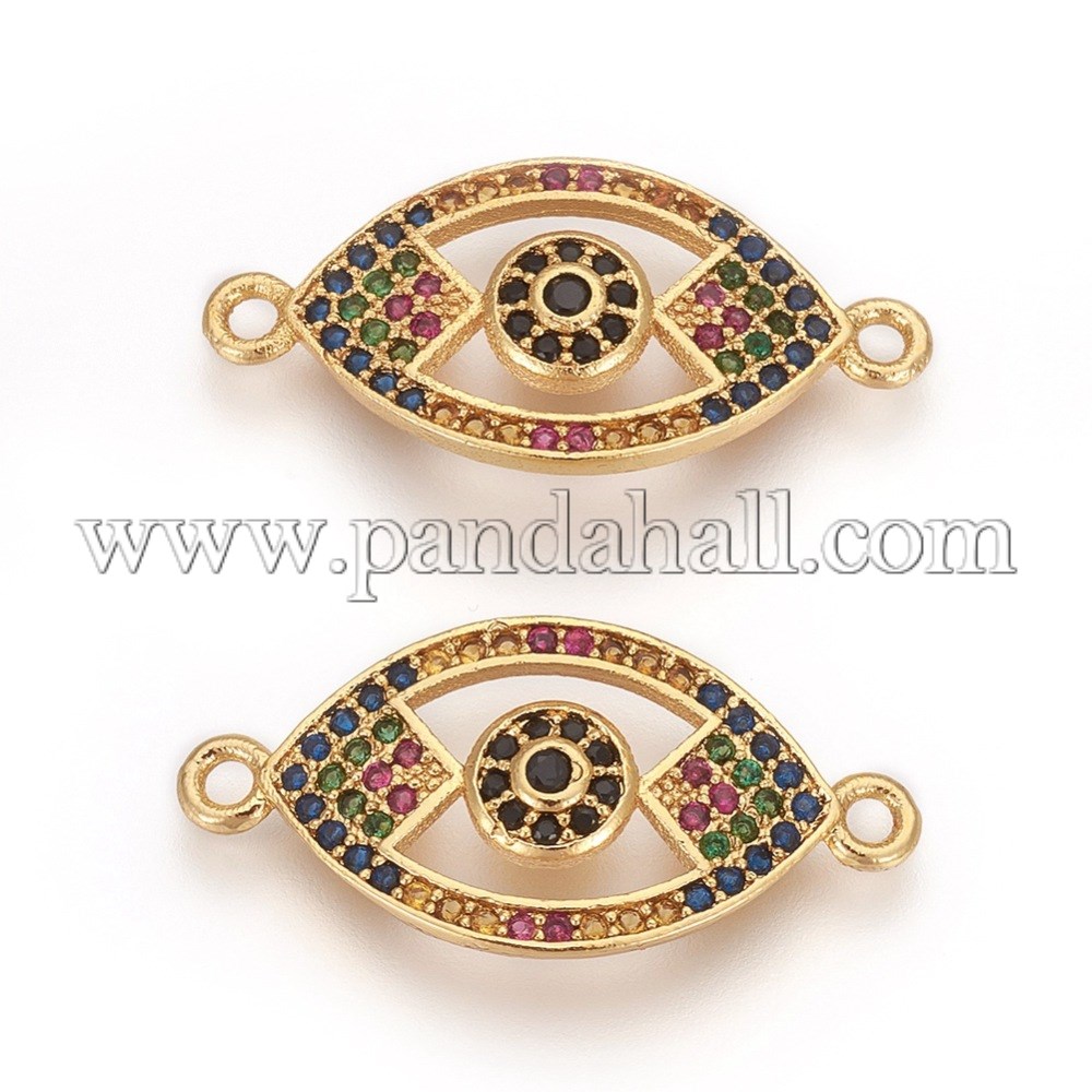 Brass Links, with Micro Pave Cubic Zirconia, Evil Eye, Colorful, GoldenSize: about 26.5mm wide, 13mm long, 2.5mm thick, hole: 1.6mm.