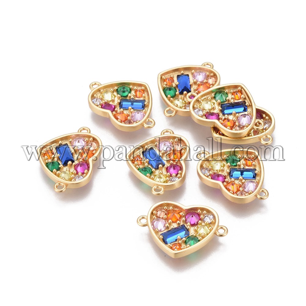 Brass Micro Pave Cubic Zirconia Links, Heart, Colorful, GoldenSize: about 20.5mm wide, 14mm long, 2.5mm thick, hole: 1.2mm.