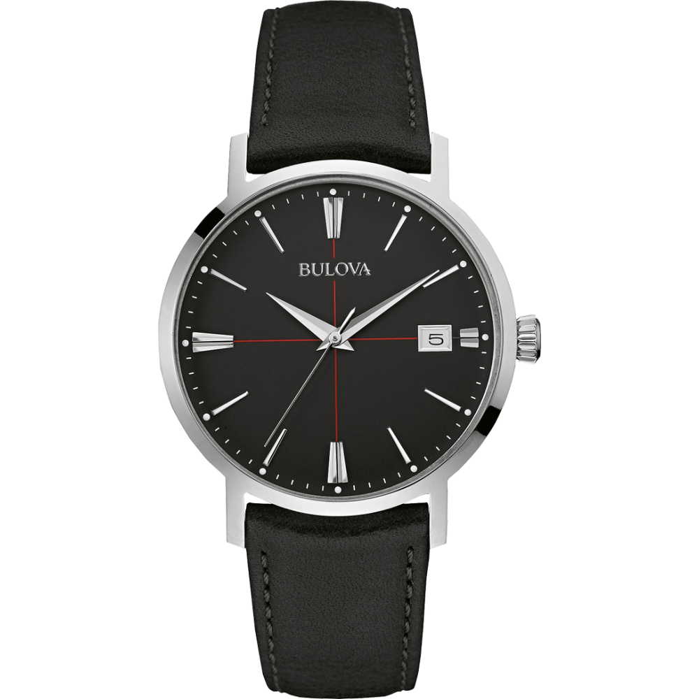 FACE SHAPE – Circular FACE COLOUR – Black BAND TYPE – Strap BAND MATERIAL – Leather:Black MOVEMENT – Quartz CASE – Stainless Steel CRYSTAL – Mineral Flat FEATURE – Date DIAL TYPE – Analogue CONSTRUCTION – 30m/100ft (3 ATM) DIMENSIONS – Diameter 39.0 mm; Thickness 8 mm From the Aerojet collection. It sports a black leather strap and a stainless steel case which complements the black face. We are a Bulova UK authorised dealer Brand new boxed stock with full retail boxes & paperwork 3 year warranty