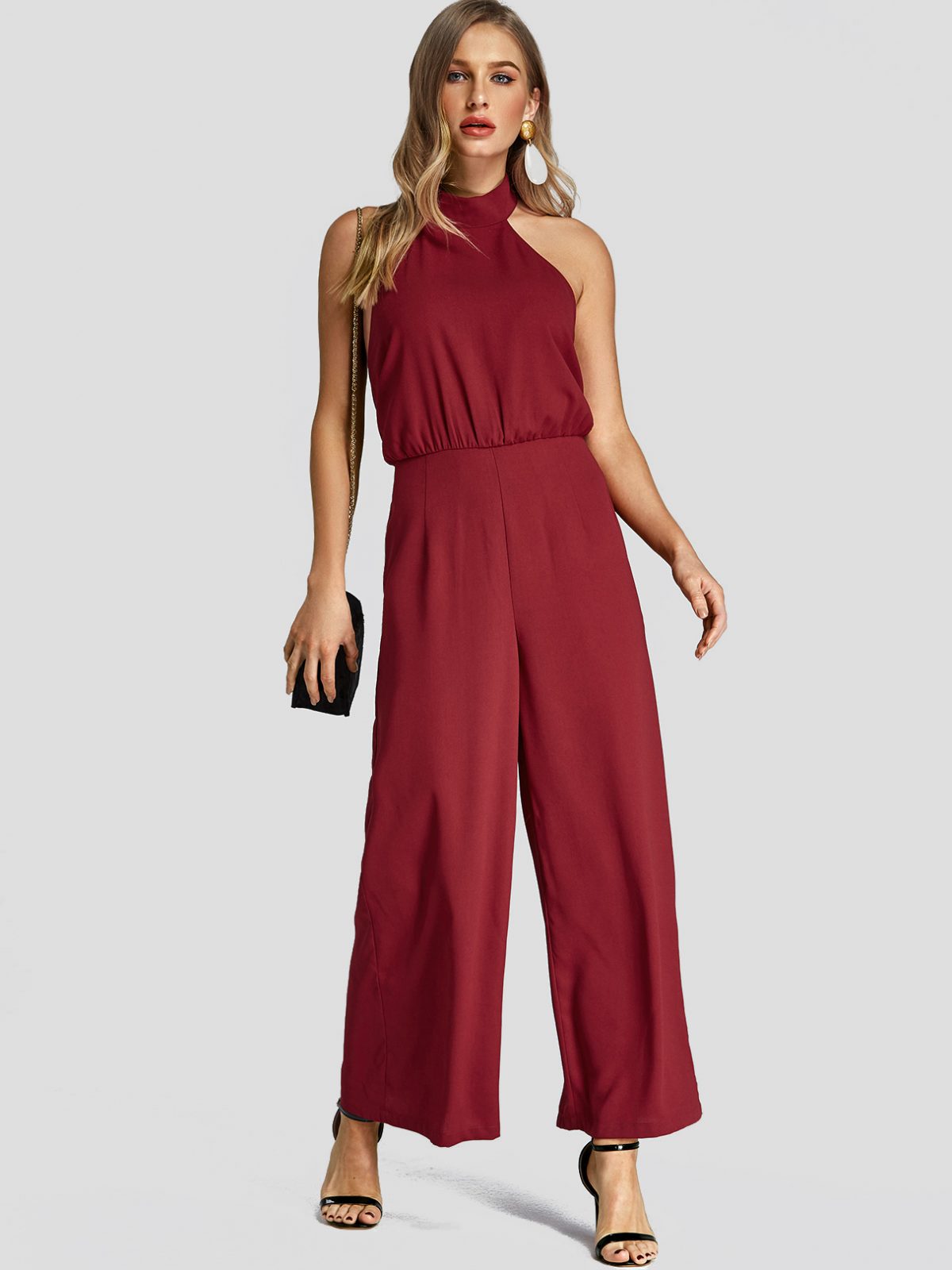 Jumpsuits For Women With Wholesale Prices Online | Yoins.com You will heading straight in the right direction with this wide leg jumpsuits. It is adorned with halter neckline, backless design, wide leg and high-waisted. Just pair it with your heels to enjoy yourself.