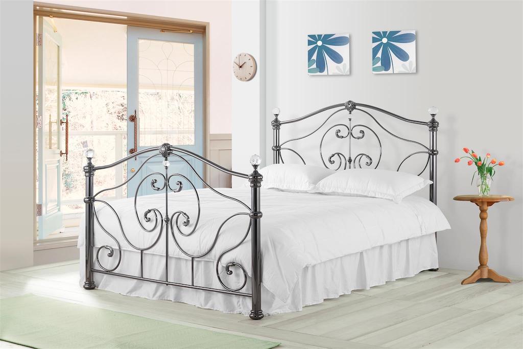 The Cadiz is a beautiful black nickel metal bed frame. This beautifully crafted bed features intricate frame work detailing and stunning crystal finials, which give this bed frame a stylish yet timeless appeal. The Cadiz is finished in a beautiful black nickel colour.
