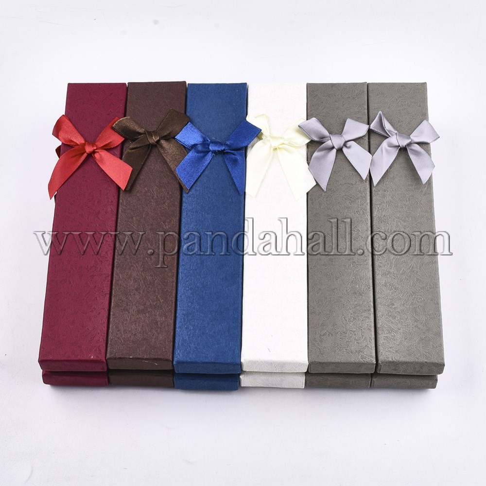 Cardboard Necklace Boxes, with Sponge Inside, Rectangle with Bowknot, Mixed ColorSize: about 21cm long, 4cm wide, 2.4cm high.