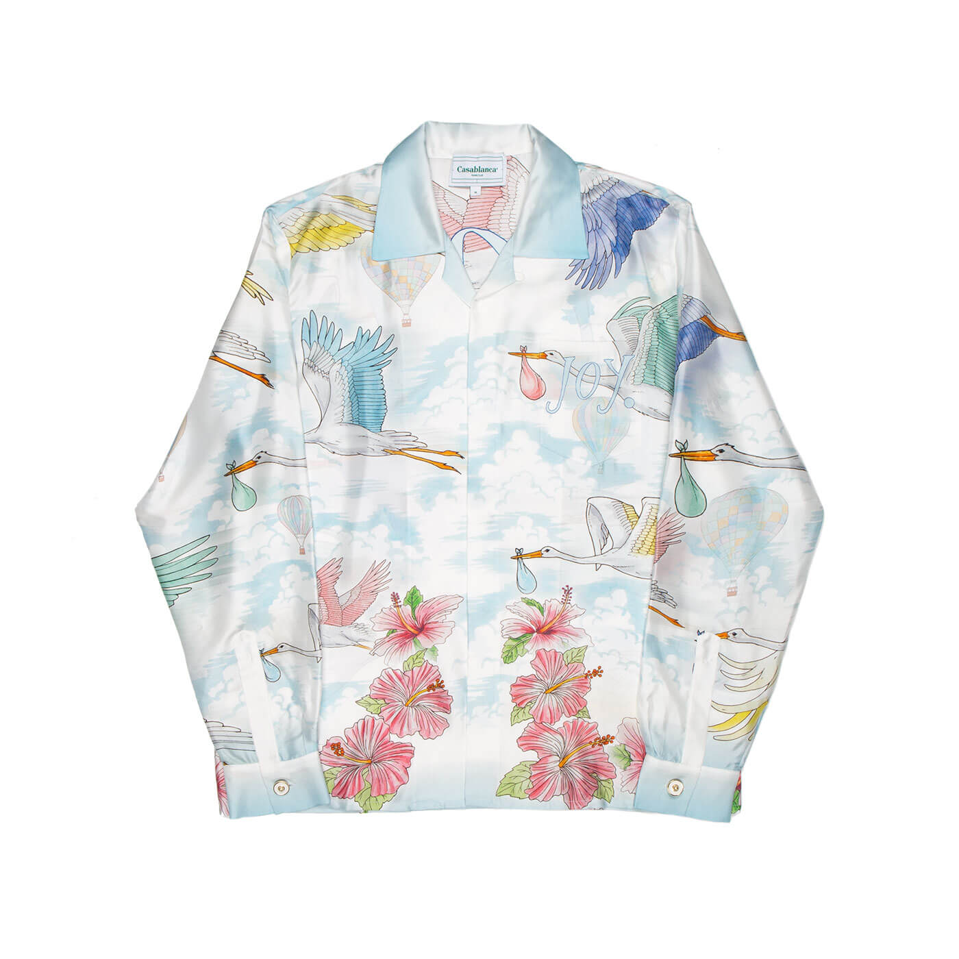 Casablanca Delivering Joy shirt This shirt from Casablanca new collection comes in a regular fit. The long sleeved shirt, here in multicolor, is made of silk and features an all over pattern, hidden buttons closure and a cuban collar. – S/S2022- Long sleeved shirt- Hidden buttons closure- Composition: 100% Silk – Made in Italy- Code: MS22-SH-006- The model is wearing an international M size