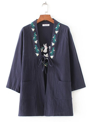 Casual Embroidery Long Sleeve Pockets Kimono For Women