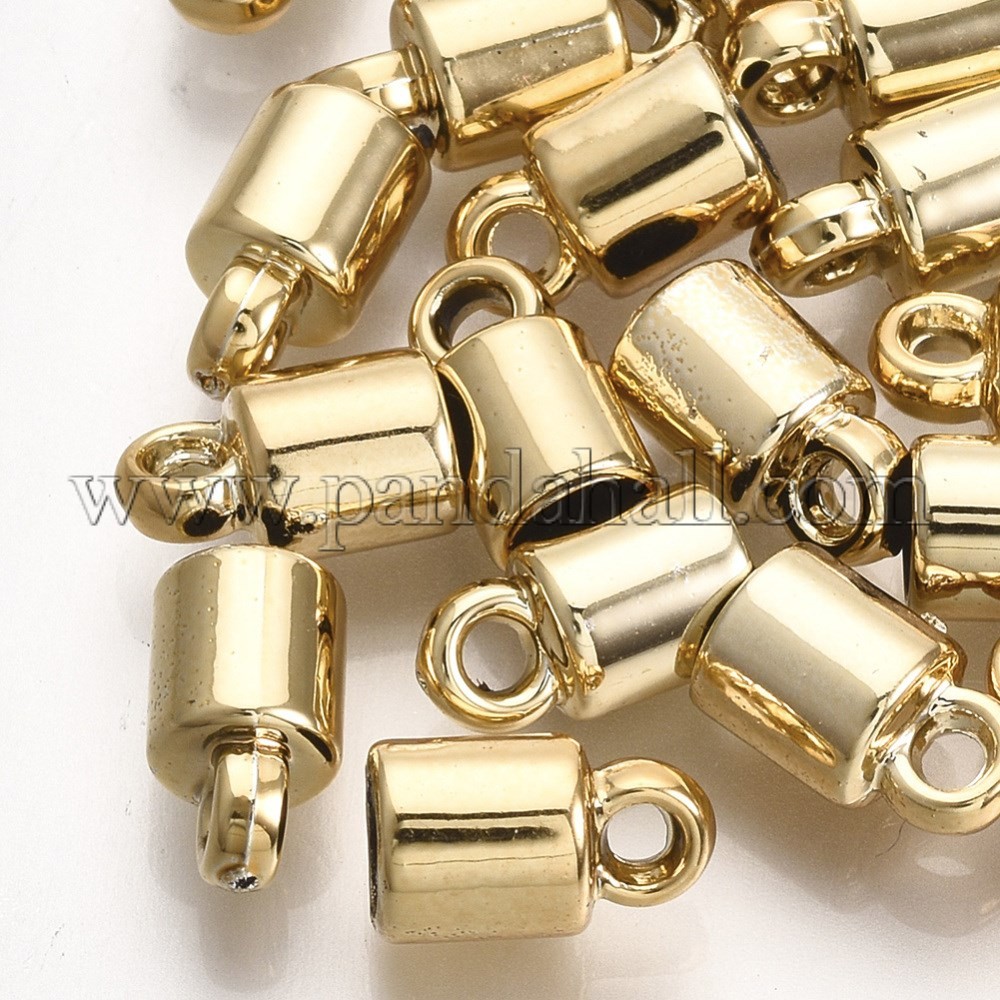 CCB Plastic Cord Ends, Column, GoldenSize: about 9.5mm long, 5.5mm in diameter, hole: 1.8mm; inner diameter: 4mm.