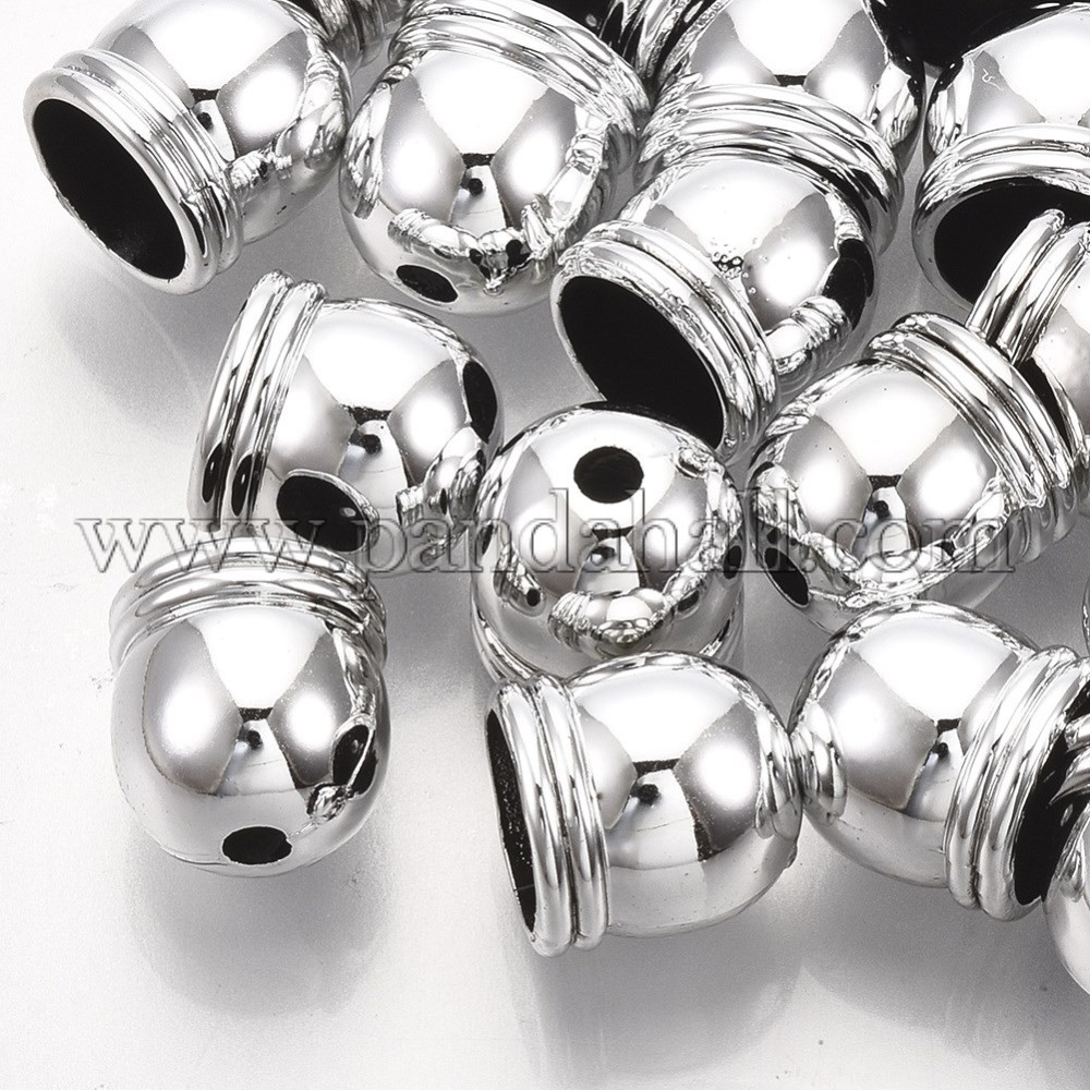 CCB Plastic Cord Ends, PlatinumSize: about 10mm long, 10mm in diameter, hole: 2mm; inner diameter: 8mm.
