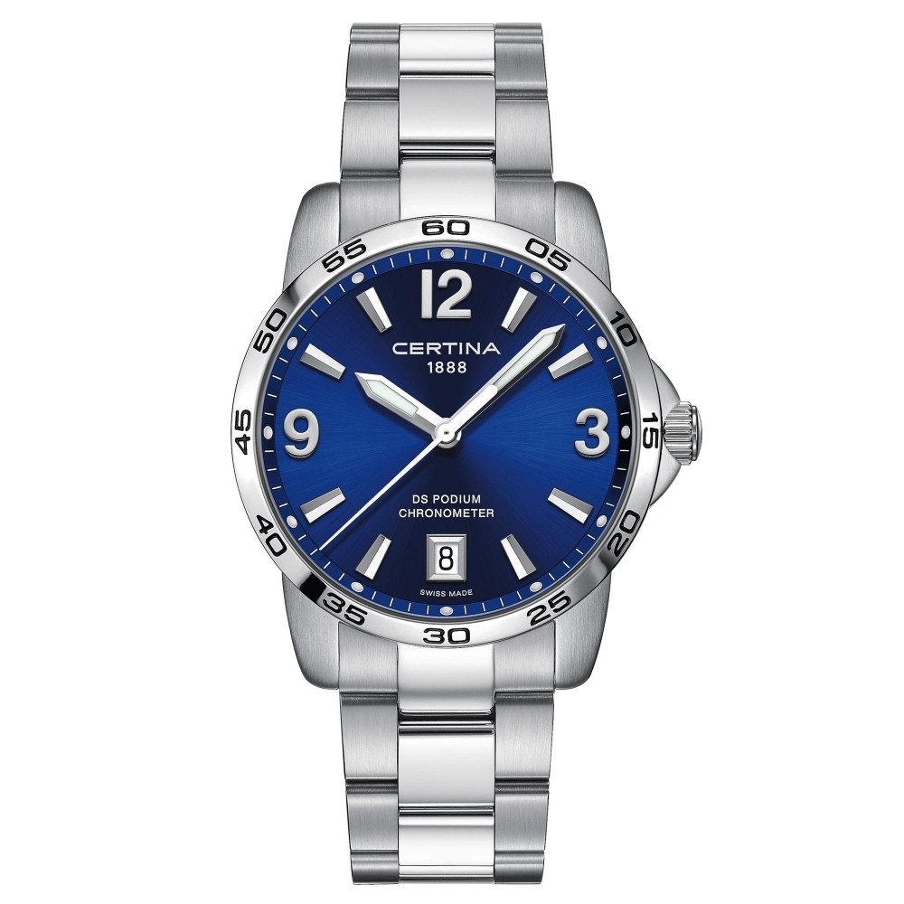 Certina C034.451.11.057.00 DS Podium Chronometer Wristwatch Case Diameter: 40mm Case Thickness: 11mm Case: DS Concept Stainless steel 316L Protected crown Bezel: Stainless steel 316L Glass: Sapphire crystal Anti Reflective treatment on one side Dial: Blue, Index + Arabic Movement: Swiss Made Quartz PrecidriveTM End Of Life Chronometer Water resistance: Up to a pressure of 10 bar (100 m) Bracelet: Stainless steel 316L Buckle: Stainless steel 316 L.Butterfly clasp with 2 push-buttons The DS Podium 40 mm delivers pure time – with chronometric precision. An exceptionally clear dial, Super-LumiNova highlights and a date window at 6 o’clock. We are a Certina UK authorised dealer Brand new boxed stock with full retail boxes & paperwork 3 year warranty