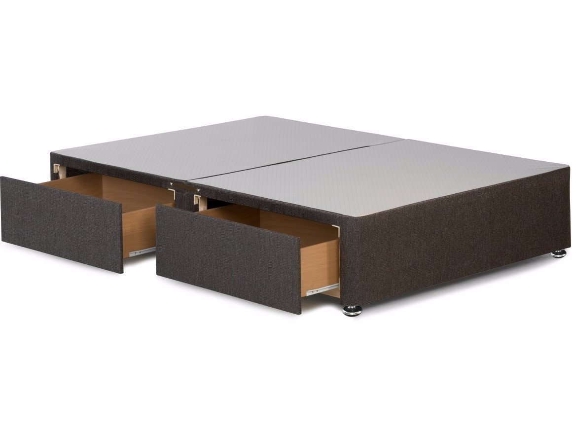 This Platform Top Divan Bed Base is constructed from quality timber and is available in a choice of colours. Designed to coordinate with your bedroom, this stylish base does not need a valance to cover its elegant style. Available with your choice of drawer options, making it a great storage solution for any bedroom. These bases come complete with castors and are ready to attach a headboard to either end. The mattress and headboard is not included but can be purchased separately.