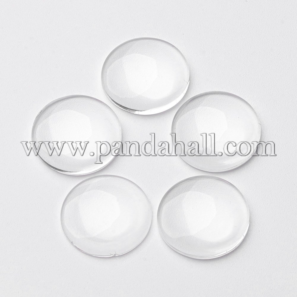 Clear Glass Cabochons, Transparent, Half Round Circle Flat Back for Jewelry and Cabochon Settings, ClearSize: about 15mm in diameter, 3.8~5.8mm thick.All new styles in unique glass. Tempered glass cabochons transparent surface. After sticking on a pattern, cover on the tempered glass, for long-lasting wear. Use these cabochons with any flat components on a chain or a cord to be a decent necklace, bracelat, or your cell phone’ strap.