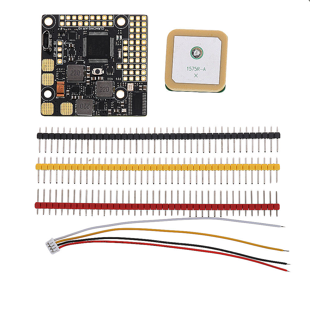 Specification:STM32F405RGTMPU9250 SPIBP280 baro2 motor Outputs6 Servos outputsup to 6S direct battery powerBuild in 5V 3.5A bec dedicated for ServosBuild in 12V 3.5A BEC dedicated for video and cameraBuild in 5V 3.5A BEC and 3.3V 500ma for systemBuild in PDB with 130A current sensorBuild in Voltage monitoring resistorRssi pinBuild in Betaflight OSDLed_strip share 5V with servo power6 UARTS: UART1(Serial rx ), UART2, UART3, UART4, UART5 UART 6Buzzer pinsBuild in Camera_setting pin near camera connection (future implement in Inav)Pilot Tube support with resistor divider30.5×30.5 normal FC mounting holesRemote USB connector( with pin header )Included GPS, colors header pinsClick to update the firmware:https://github.com/iNavFlight/inav-configurator/releases/tag/1.9.3Package included:1 xCLRACINGF4 AIR V3 Flight Control Build in Betaflight OSD for Fixed Wing RC Airplane