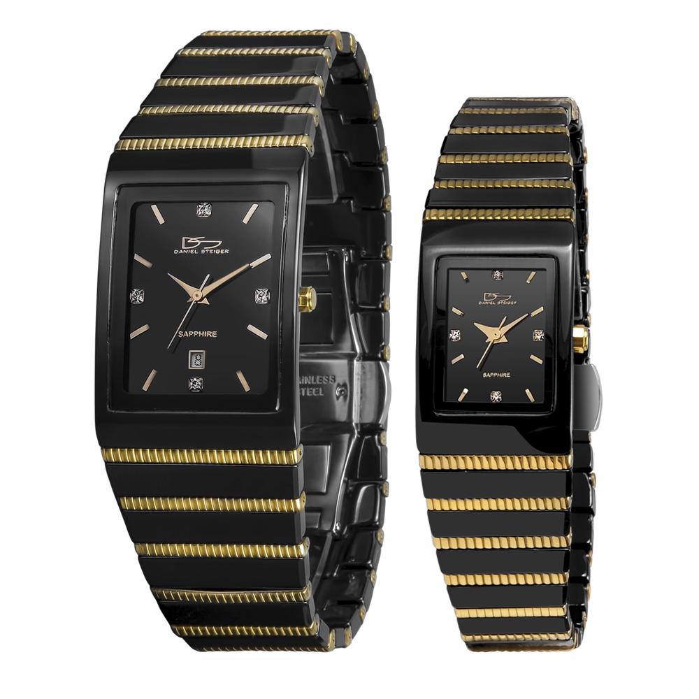 Inspired by the exotic stripes of a King Cobra our latest pair of watches is guaranteed to strike it big on the design front. The perfectly polished minimalist black ceramic case and bracelet also means you are covered as far as excellent quality goes. We of course go that extra mile by adding gold plated solid stainless steel detailing and a precision quartz date movement that is backed with our unlimited 5 year movement warranty. A final touch of luxury is the designer dial covered with a scratch resistant sapphire crystal and studded with 4 of our flawless Diamondeau® – the Supreme Diamond Alternative. Both bracelets are fully adjustable and come with a double release butterfly buckle.