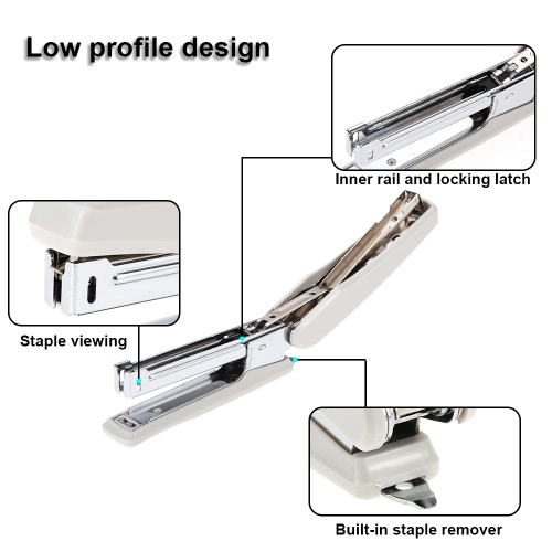 Features: Integrated built-in staple remover for quick fixes. Durable metal constriction with rust-proof technology. Staple up to 16 sheets at a time. Inner rail and locking latch to reduce jamming. Low profile design without taking up too much space. Suitable for home, school and office or as a gift.