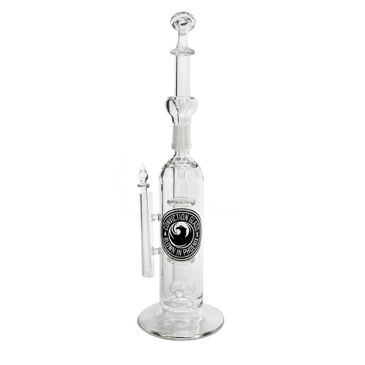 Convenient and high-quality, this concentrate rig will make sure to have all of your bases covered so that you can get the effortless smoking experience that you want! Beautifully crafted, this premium rig from Conviction Glass makes it easy to get a smooth and enjoyable concentrate experience with water filtration. With an added benefit of having storage on the side for your included glass concentrate tool, this piece will easily become a new favorite in any collection! This glass piece has a 14mm Male joint that will fit 14mm Female accessories and replacements.