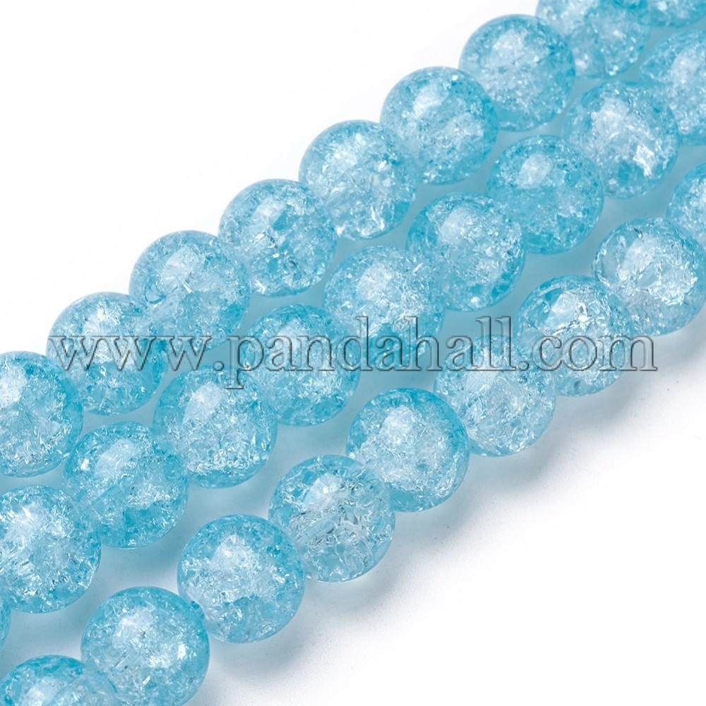 Crackle Glass Beads Strands, Dyed, Round, LightBlueSize: about 10~10.5mm in diameter, hole: 1.5mm; about 38pcs/strand, 13.7″(35cm).