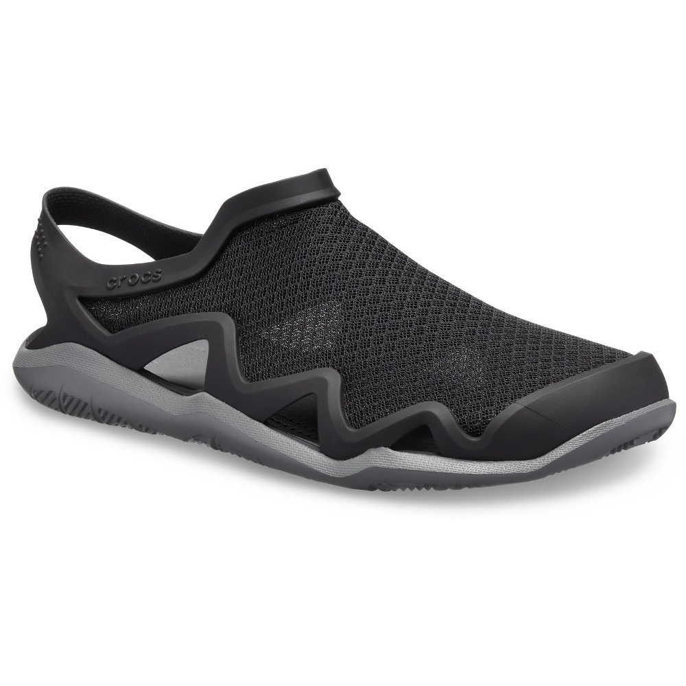 The Crocs Men’s Swiftwater Lightweight Traction Slip-On Sandals is a stylishly comfy pair that has a mesh upper to add breathability and make it suitable for any season. The firm sole improves durability and provides better traction in slippery surface or terrains around water. This lightweight pair gives you a go-anywhere style., Improved traction around water., Lightweight., Mesh Upper.