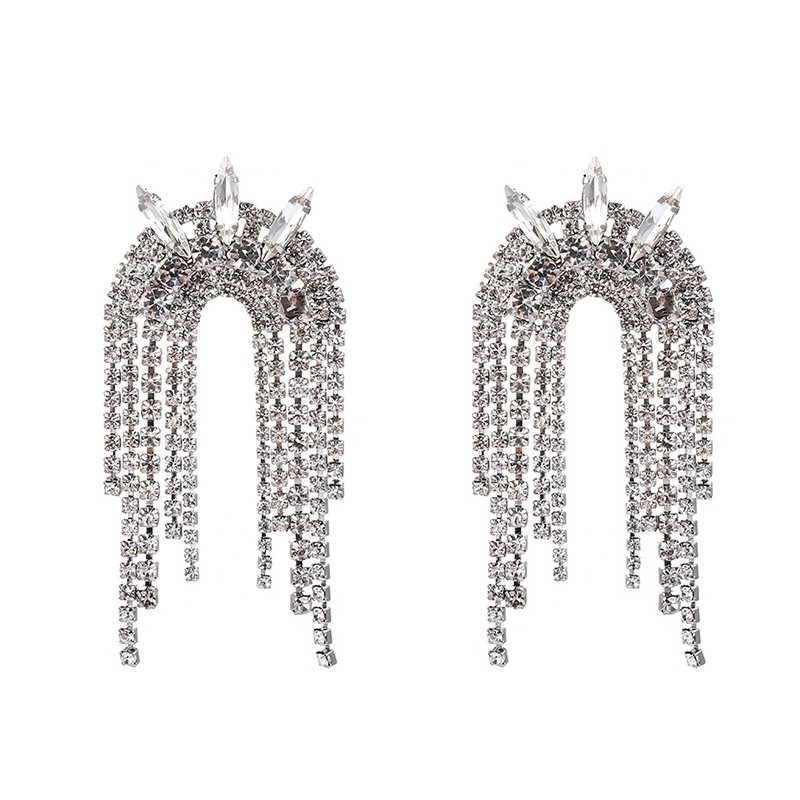 Be the first to review “Crystal Diamond Crown Tassel Pendant Earrings”